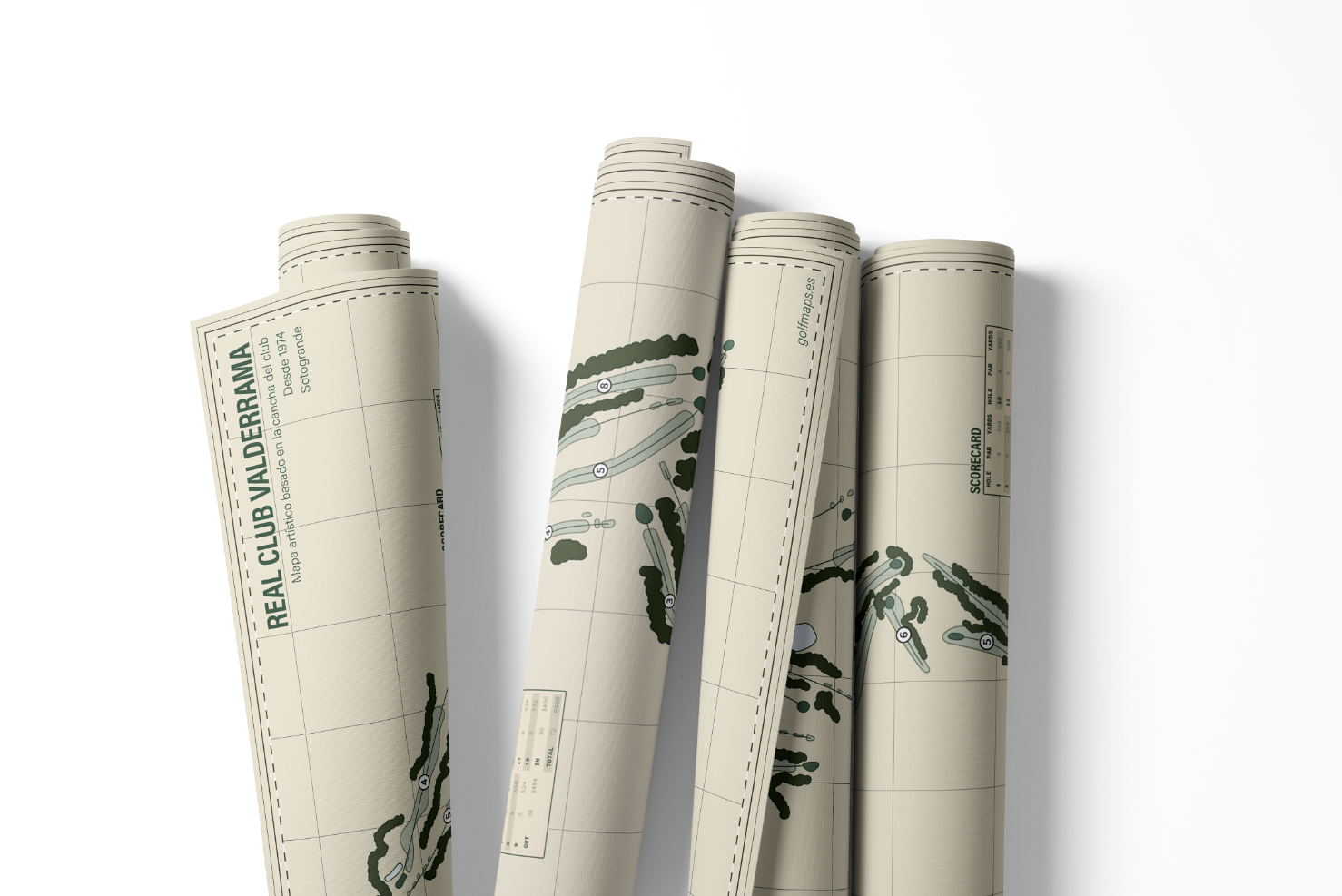 Mapas ilustrados disponibles de campos de golf en España, llenos de detalle para vivir tu pasión más allá del juego. (Desliza hacia el lado →)